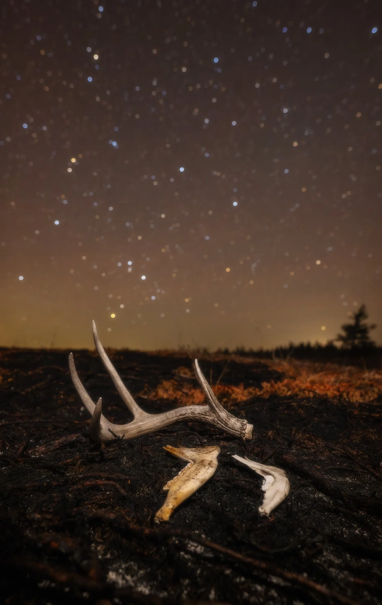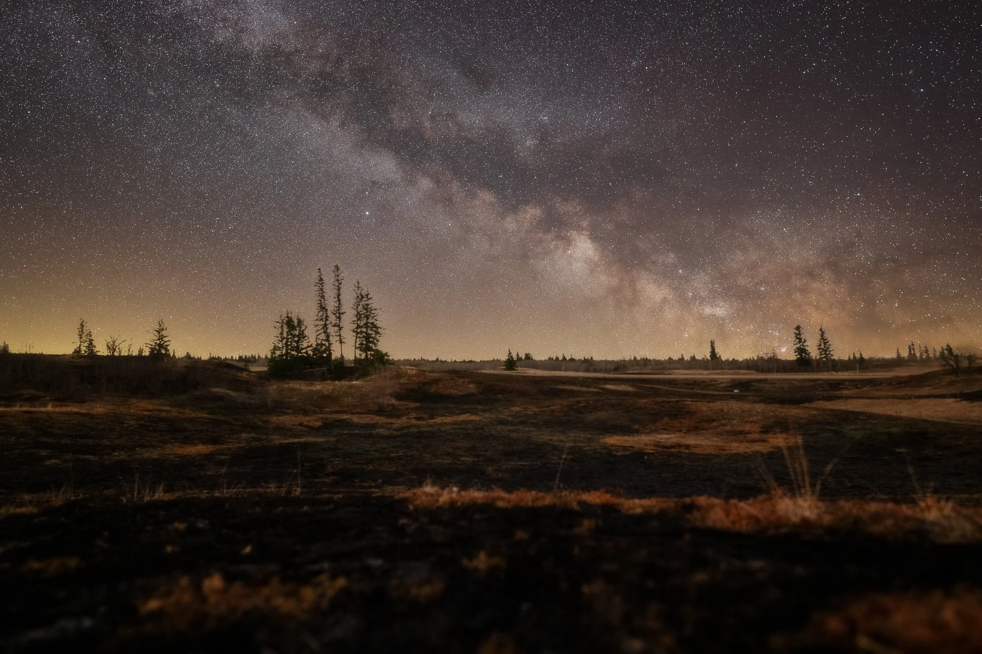 During a trip to the Spirit Sands the week before, I noticed the charred black grounds around the Epinette Creek trailhead. The park had recently done a controlled burn and in 20 years coming to Spruce Woods, this view was a first for me. I returned one week later under the new moon for more ideal dark sky conditions. I had a few goals for the evening including capturing some star trails, some prairie crocuses (Manitoba’s provincial flower), and something that really emphasized the burn area in the foreground.