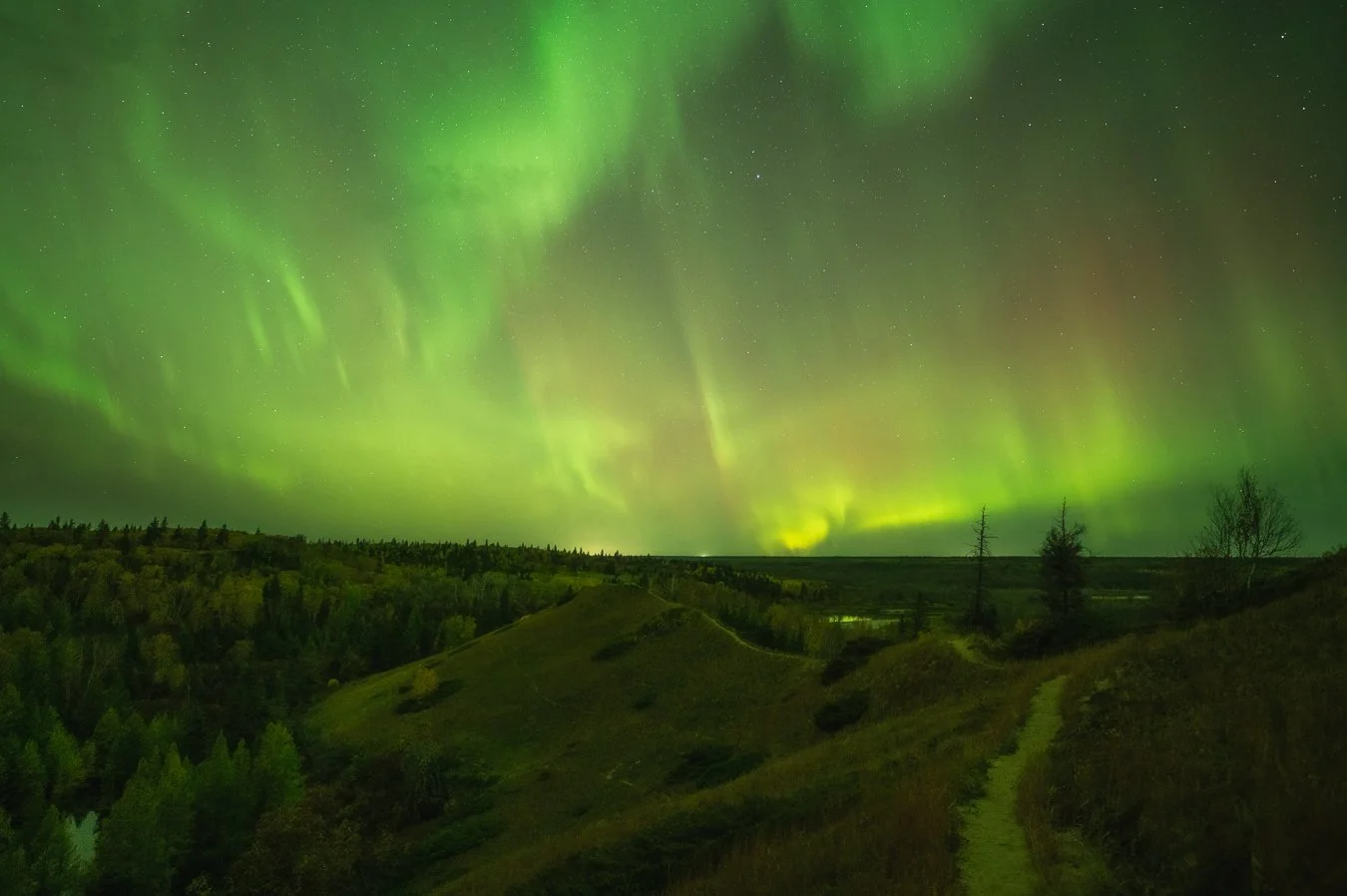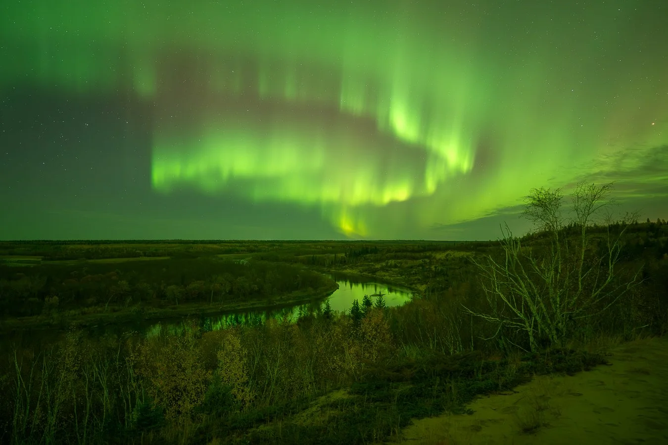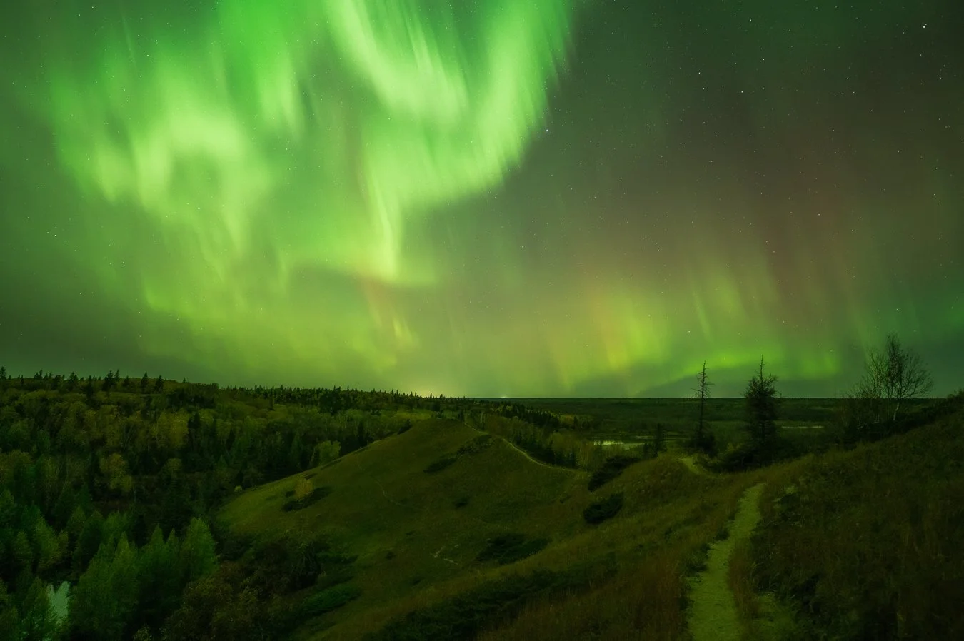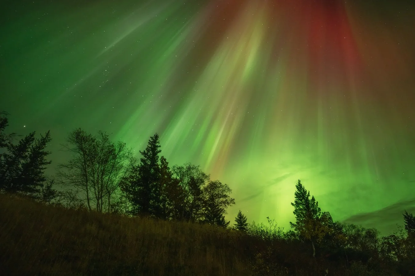 Easily the most powerful experience I’ve ever had under the northern lights was the G4 storm on October 8, 2024 at the Hogs Back. This was a location I had scouted two years prior and mentally recorded to come back to for northern lights when the conditions were right. The forecast was questionable, but the space weather data was off the charts, so I decided to take the risk. The sky cleared a few hours after I arrived and I was able to witness the best aurora I have ever seen.